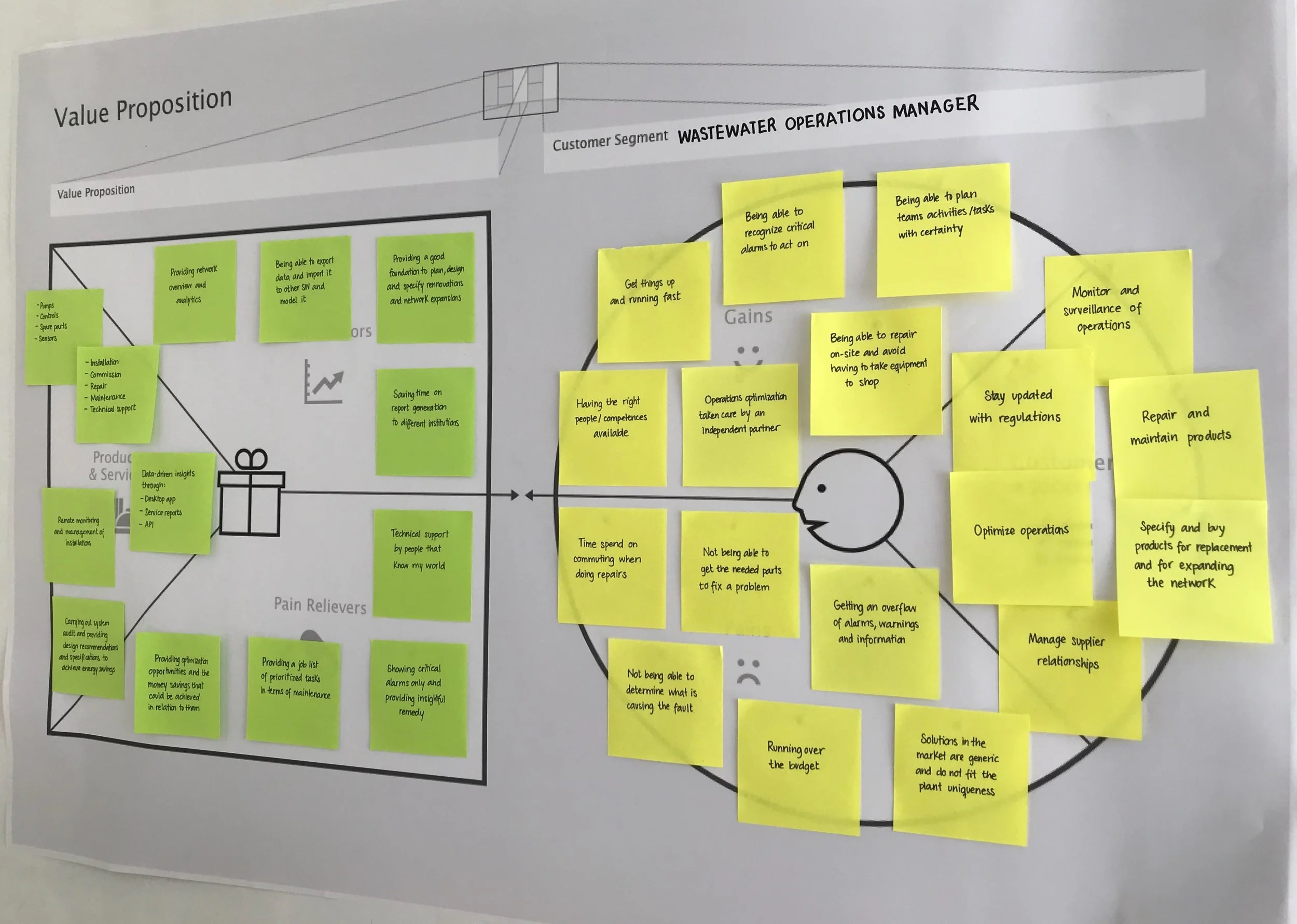 To begin with, I planned and facilitated several internal workshops with key stakeholders. These allowed us to harvest the knowledge and experience from water utility business developers, application specialists and different regions’ sales and service personnel.
